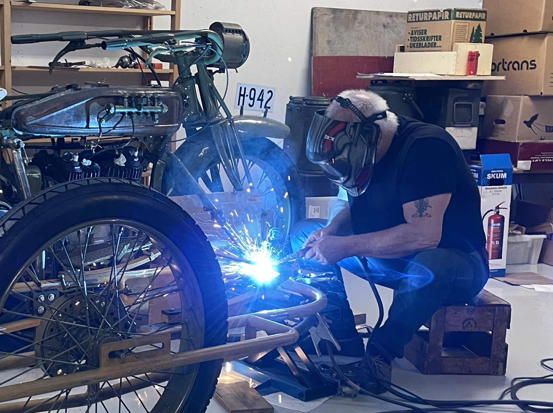 Rjukan brannvesen (naboen til sentralverkstedet) under brannsjef Olaf Berg tok i bruk et motorsykkelkorps med lokalt preppede Indian PP sidevognsykler i 1919. Noe av spesialutstyret disse hadde var som Spanjola en alumiumskasse bak på sidevogna. Sylinderne til Spanjola er nettopp to sett til Indian PP 1919 modell, kan det være en sammenheng? Brannvesenet bestilte forøverig FWD lastebilchassis i 1920, og bygget det opp til brannbil lokalt.